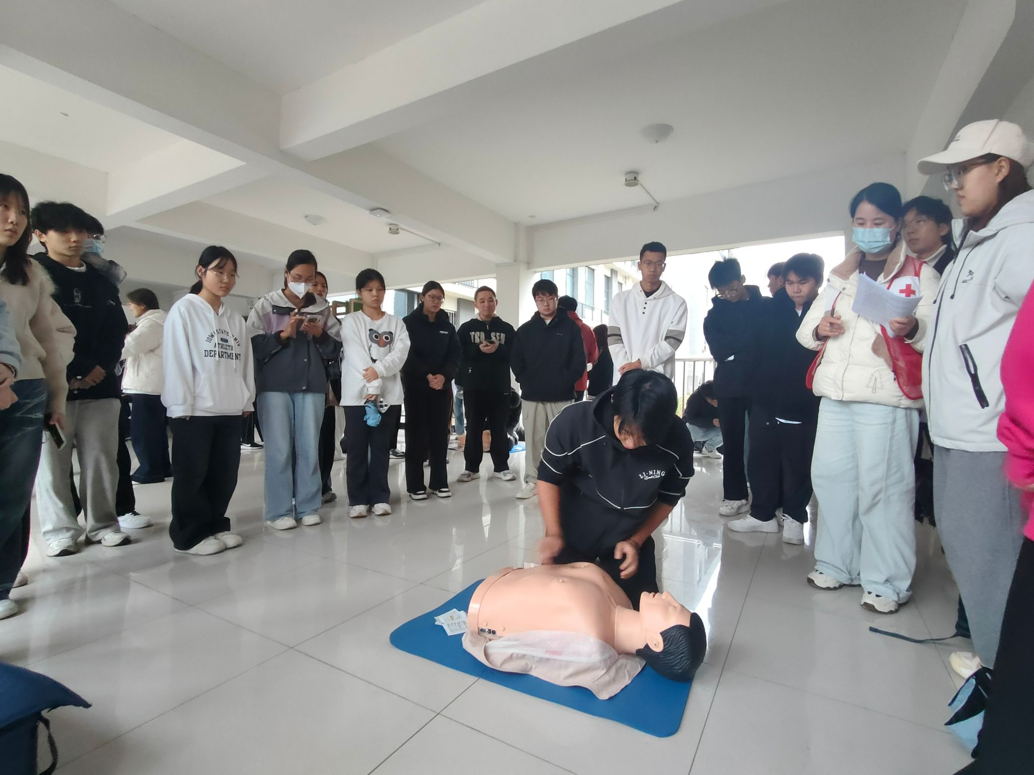 此次培训通过理论讲解与实操演示相结合的方式,系统介绍了心搏骤停的识别、胸外按压的正确手法、人工呼吸的操作要点以及自动体外除颤器(AED)的使用方法等内容。让同学们明白“黄金四分钟”是抢救心搏骤停患者的关键时期,规范、及时地现场急救至关重要。在实操考核环节,同学们反复练习,从环境评估、意识判断、呼救求援,到胸外按压的深度与频率、开放气道的手法,每一个步骤都力求标准、到位。参与培训的37名同学全部顺利通过技能考核。