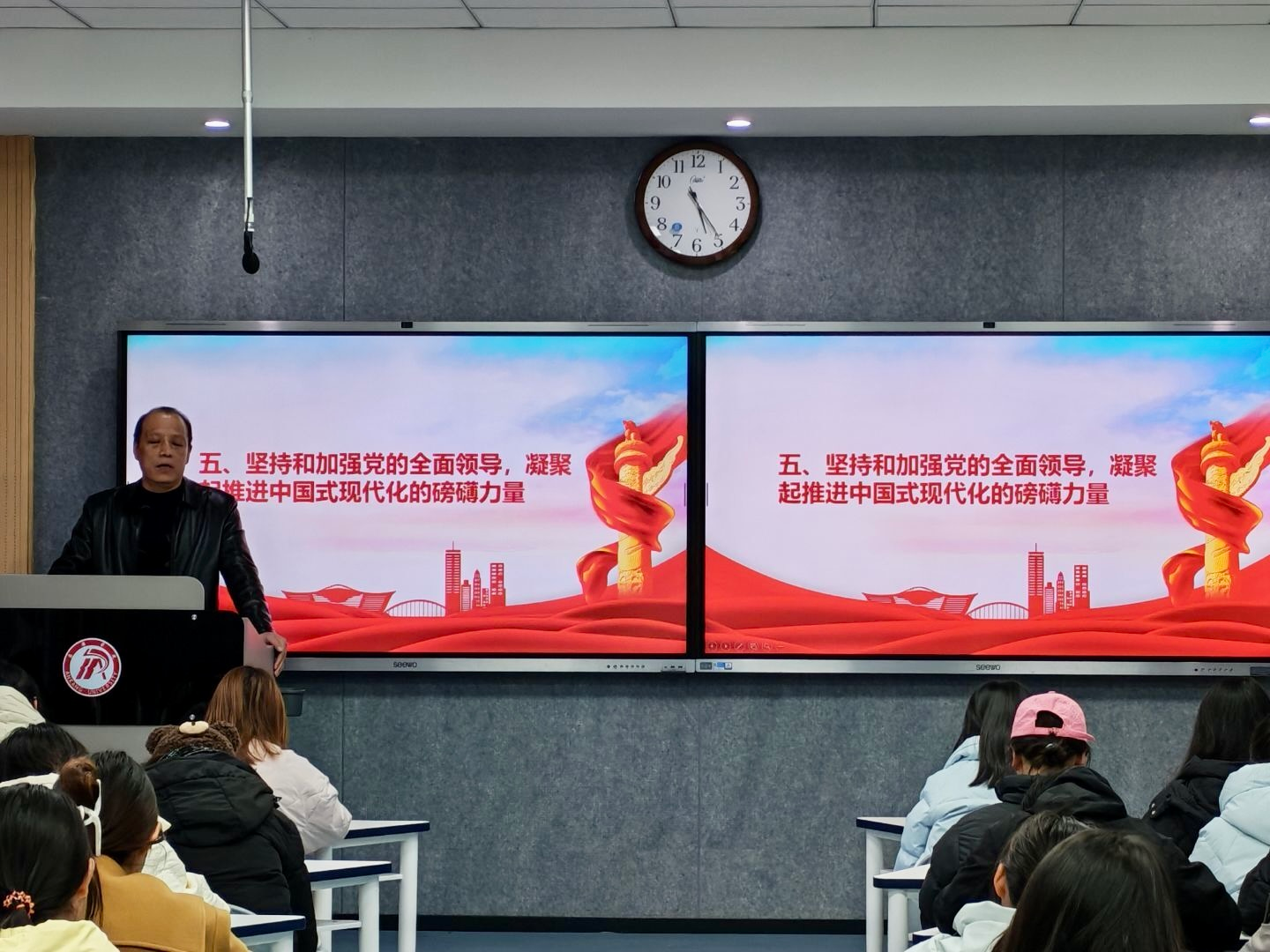 12月17日,为深入学习党的二十届四中全会精神,引导青年学子凝聚思想共识、汇聚行动力量,Beat365唯一官方网站组织开展“以青春赴时代之约,以奋斗践全会精神”主题团课。学生团干部及新发展团员齐聚一堂,共同学习领会全会内容与实践要求,本次团课由党总支书记任森龙主讲。
