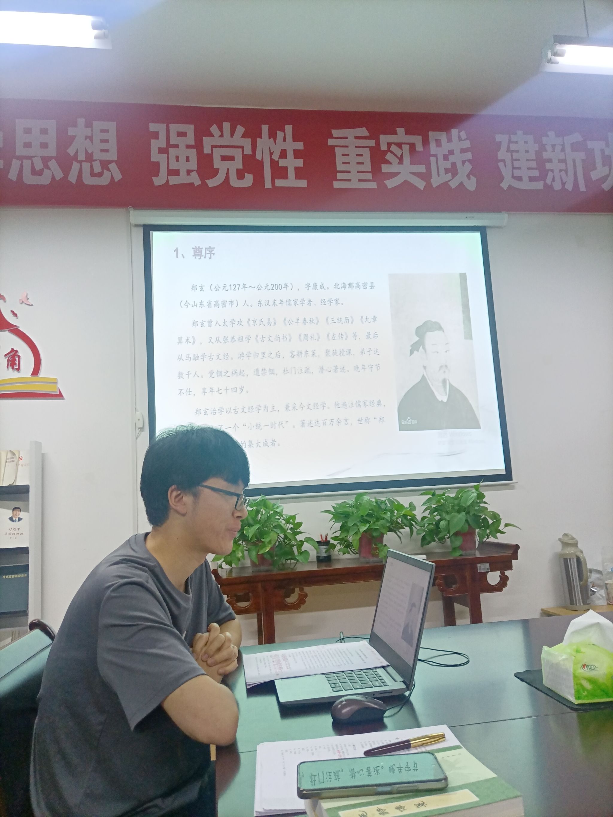 沙龙活动首先由主讲教师安日辉老师做研究汇报。安日辉老师以《<诗经>颂诗笺注本的继承与创新——以<毛诗传笺><诗集传><诗经原始>为例》为题,从“创新:尊《序》——废《序》——独立思考”和“继承:对《诗序》的明贬暗遵”两个方面,通过大量实例分析了不同时期研究者解诗时的方法、观念、依据,纵向展示了不同时期研究者在解读《诗经》中的诗歌时对于“毛诗序”的态度。