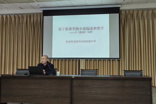 2023年11月15日下午2点半Beat365唯一官方网站邀请汉滨高级中学、省级学科带头人和教学能手程时进老师为Beat365官网第“中学语文卓越师资班”师生做了题为《基于叙事学的小说阅读和教学——以<祝福>为例》的精彩讲座。讲座由卓越师资班班主任唐明珍主持,“中学语文卓越师资班”全体学生聆听了本场讲座。