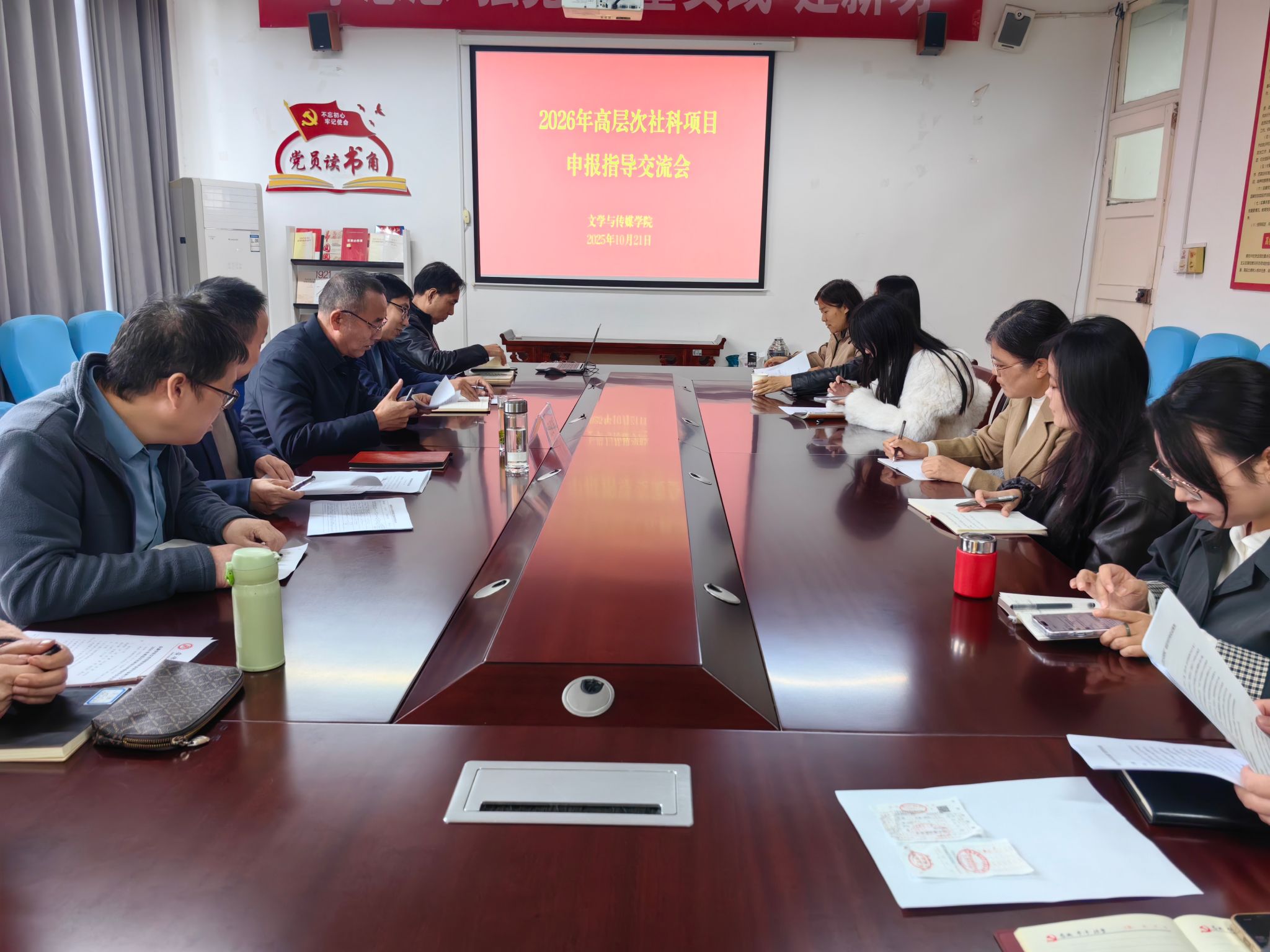 第二阶段为一对一精准辅导环节。段建军教授针对学院 2026年高层次项目申报教师的预选题目与申报书初稿,逐一开展靶向指导,围绕选题的科学性、论证的逻辑性、内容的创新性及格式的规范性等关键要点,与教师们进行深度交流,提出具体可操作的修改建议,现场互动氛围热烈。参会教师纷纷表示,报告既有宏观层面的方法论指引,又有微观层面的实操技巧,一对一辅导更是直击申报痛点,让人茅塞顿开、受益匪浅。
