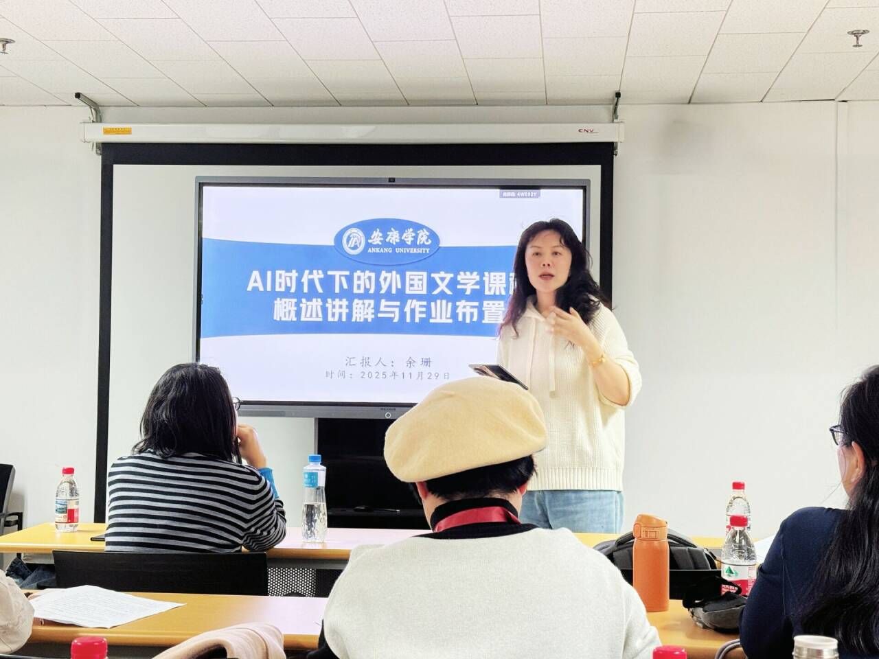 国内外学界外国文学教学与研究的热点与趋势分论坛上,余珊老师以《AI时代外国文学课程教学创新与实践》为题作专题报告。她结合自身教学实践,系统阐述了人工智能技术在外国文学课程中的应用策略,以及课程设计与作业布置的创新方法与分论坛相关学者讨论交流
