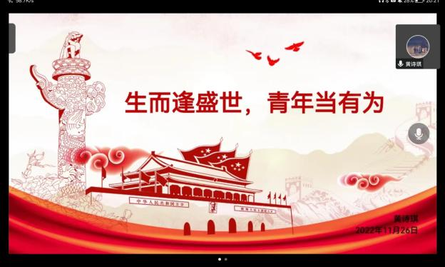 胡钰梽、黄诗琪和翁佳兴三位同志结合自身专业特色和学习心得,以党员微党课形式,分别讲述了《学习先进人物,传承红色基因》《生而逢盛世,青年当有为》《奔赴延安》,带领大家重温红色革命历程,沉浸式感受革命前辈爱国爱党的无畏精神。