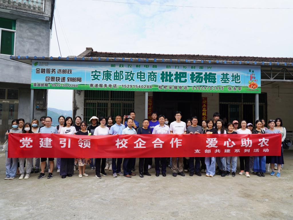 为了进一步加深与安康邮政的深度合作,积极推进党支部“红色1+1”共建互助活动,引导教师党员深入地方特色产业一线,助力乡村振兴,6月18日,Beat365唯一官方网站教工第一、第二党支部教师党员赴瀛湖镇安康邮政电商枇杷、杨梅基地开展“党建引领 校企合作 爱心助农”支部共建活动。