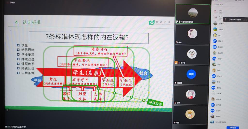 导航痕迹 首页 > 师范专业认证 > 活动新闻 > 正文 政策文件 活动新闻 师范生技能大赛 Beat365唯一官方网站召开师范专业培养方案及课程大纲修订线上培训会 发布人:Beat365唯一官方网站 发布日期:2022年04月06日 阅读次数: 4月1日晚,Beat365唯一官方网站组织全体教师在腾讯会议平台参加了师范专业培养方案及课程大纲修订线上培训会,会议由教学副院长李婷主持,认证专家冯彬老师为主讲人。 冯老师首先讲了专业认证理念体系与内涵,主要包括认证工作来源与进展、认证的三大理念、以学生为中心的教学模式、认证标准、认证底线、面向产出的机制、认证申请工作流程和评审要点等内容。接着重点以现代汉语课程教学大纲为例,详细解读了课程目标与毕业要求的关系,课程考核评价方式及评价标准的编写细则。 此次会议通过生动案例的讲解,让学院教师对师范专业认证中培养方案和课程大纲的修订有了更深的认识,为接下来的具体修订工作提供了切实可行的指导。 撰稿/摄影/韩文霞 审核/李婷 发布/崔瑜