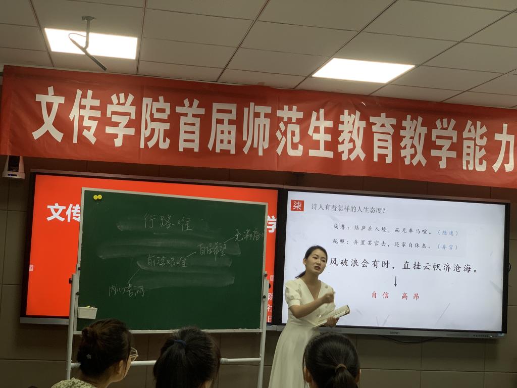 首届师范生教育教学能力大赛对接陕西省师范生教育教学技能大赛,包括粉笔字书写、即席演讲、说课、模拟授课四项竞赛内容。