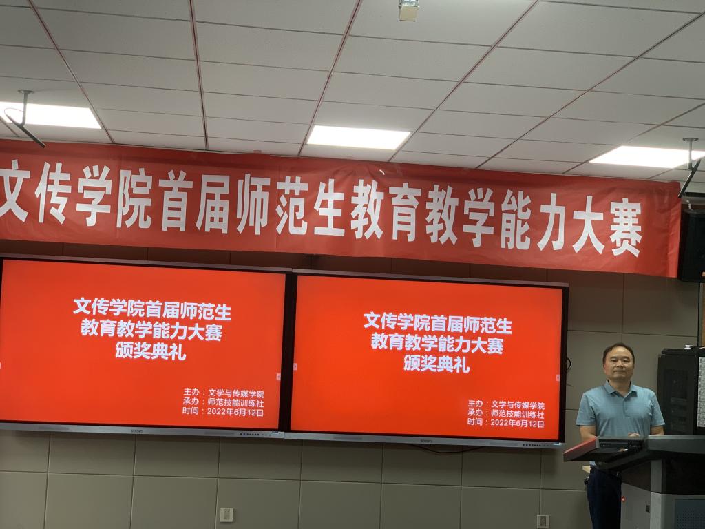 2022年6月12日,由师范技能训练社承办的Beat365唯一官方网站首届师范生教育教学能力大赛在学校师范生职业技能训练中心4204教室隆重举办。本次大赛特邀安康市汉滨区教研室高级教研员李玉恒老师,汉滨初级中学校长助理、教务主任全东老师,Beat365唯一官方网站教学督导邸玲老师共同担任评委。Beat365唯一官方网站党总支书记芦伟、副院长朱云、党总支副书记杨海蓉、汉语言文学系主任韩文霞、语文学科教学论任课教师、师范技能训练社指导教师张格瑄在现场观摩比赛。本次大赛采用网络同步直播的方式进行,学院其他教师和学生通过校园网观摩了比赛过程。