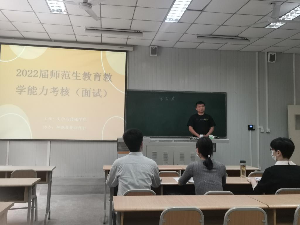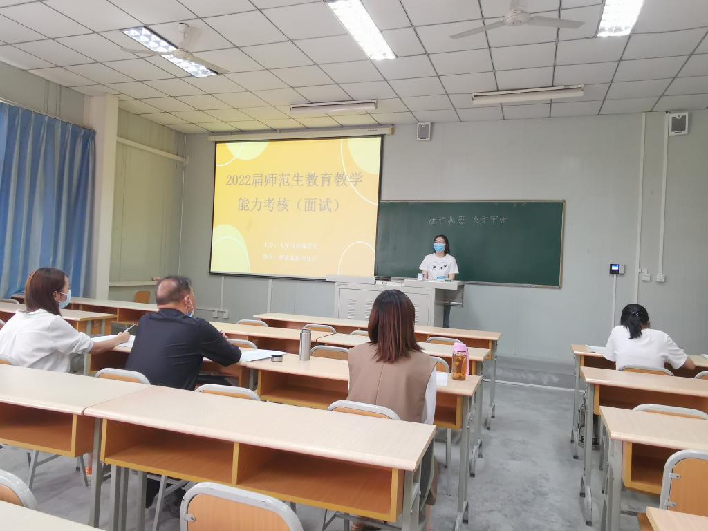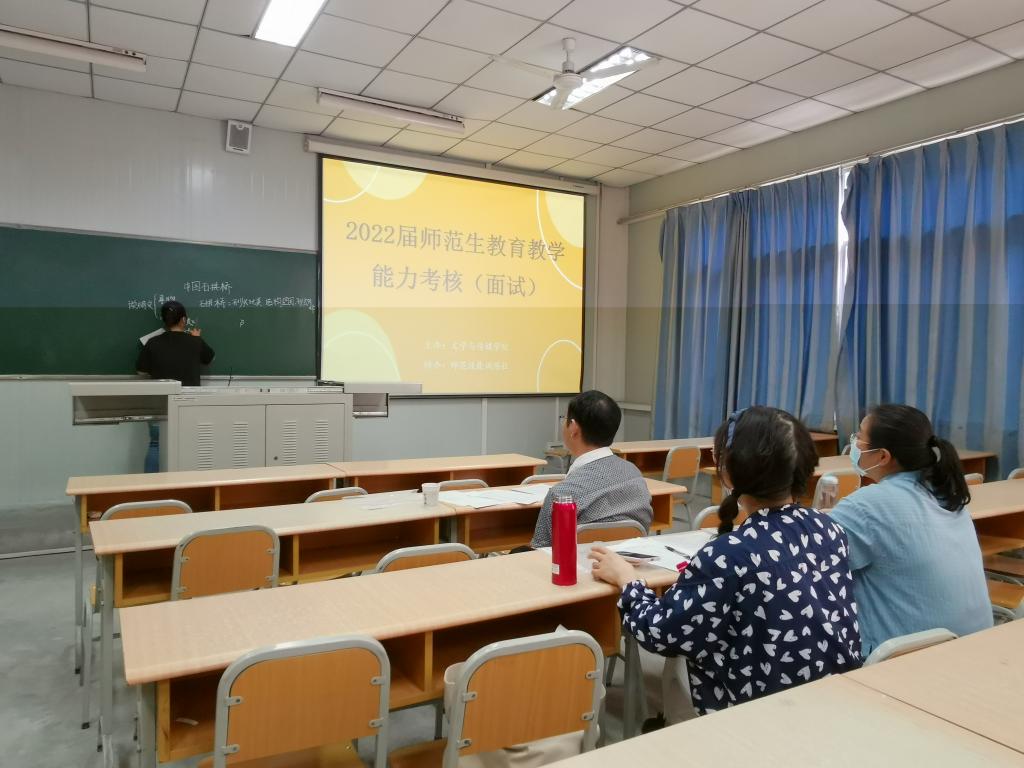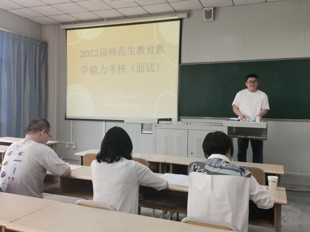 2022年5月8日—9日,Beat365唯一官方网站在江南校区十号教学楼组织了2022届师范生教育教学能力考核(面试)工作。本次面试考核由学院师范技能训练社承办,特聘安康市教研室耿良富、邱俊,汉滨区教研室李玉恒,张滩高中汪嘉雯以及学院八位教师担任考官。