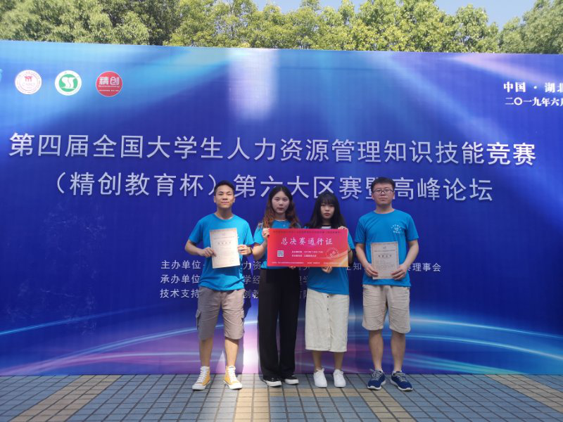 6月1日-6月2日,在宜昌举行的第四届全国大学生人力资源管理知识技能竞赛第六大区选拔赛在三峡大学落幕。永利官网由李新杰、郭萌老师带队,工商管理专业四位同学组成的304永利集团官网入口代表队,凭借深厚的专业素养和良好的心理素质,从中南财经政法大学、南昌大学、郑州大学、河南大学等众多知名参赛高校中脱颖而出,荣获一等奖。这也是永利官网学子继上年全国总决赛取得一等奖后,再次拿到全国总决赛的入场券。