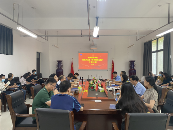 为持续推进干部能力作风建设,9月15日,304永利集团官网入口在A306会议室举行科级及以上干部政治能力提升专题培训。学院党委书记孙敬霞主持,学院领导班子、科级干部、系部主任、支部书记参加培训。
