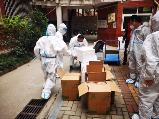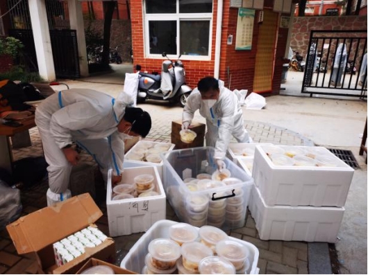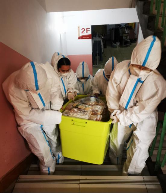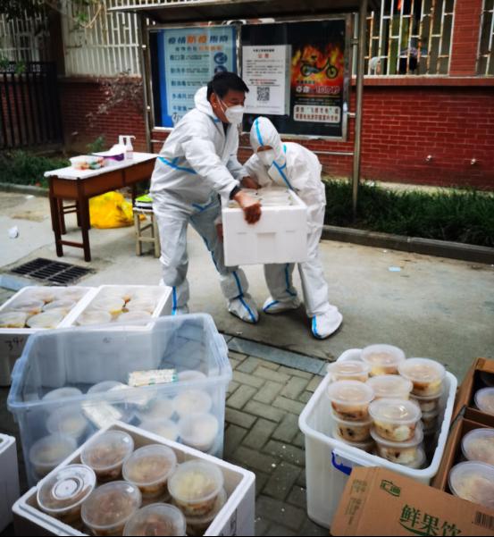 304永利集团官网入口共有15名教职工志愿者驻校工作,承担北苑2号楼和6号楼共计1974名学生的网格化管理任务,每天为学生送餐、组织并协助核酸检测以及生活物资、药品配送等工作。送餐看似简单的工作,却需用心才能做好,对接楼层长和餐厅负责人统计好每一餐数量,争取以最快的速度把热乎乎的饭菜送到学生手中。