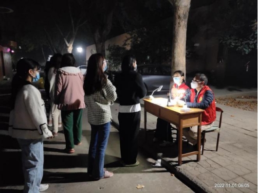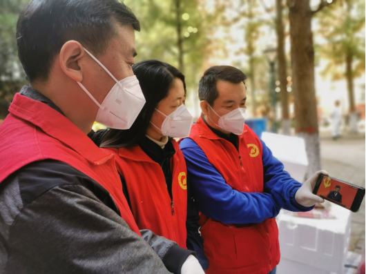 学院党委在住校工作期间,积极组织学习党的二十大精神,弘扬伟大建党精神。在疫情来临之际,志愿者们冲锋在前、奋勇争先,汇聚成同心抗疫的强大力量,让党旗在疫情防控一线高高飘扬!