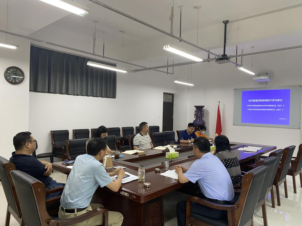 2.学院领导班子于6月13日认真学习、研讨《304永利集团官网入口实验室安全分级分类管理办法(试行)》和《304永利集团官网入口实验安全风险评估管理办法(试行)》,并根据文件要求对实验室管理工作进行了进一步的安排和部署。