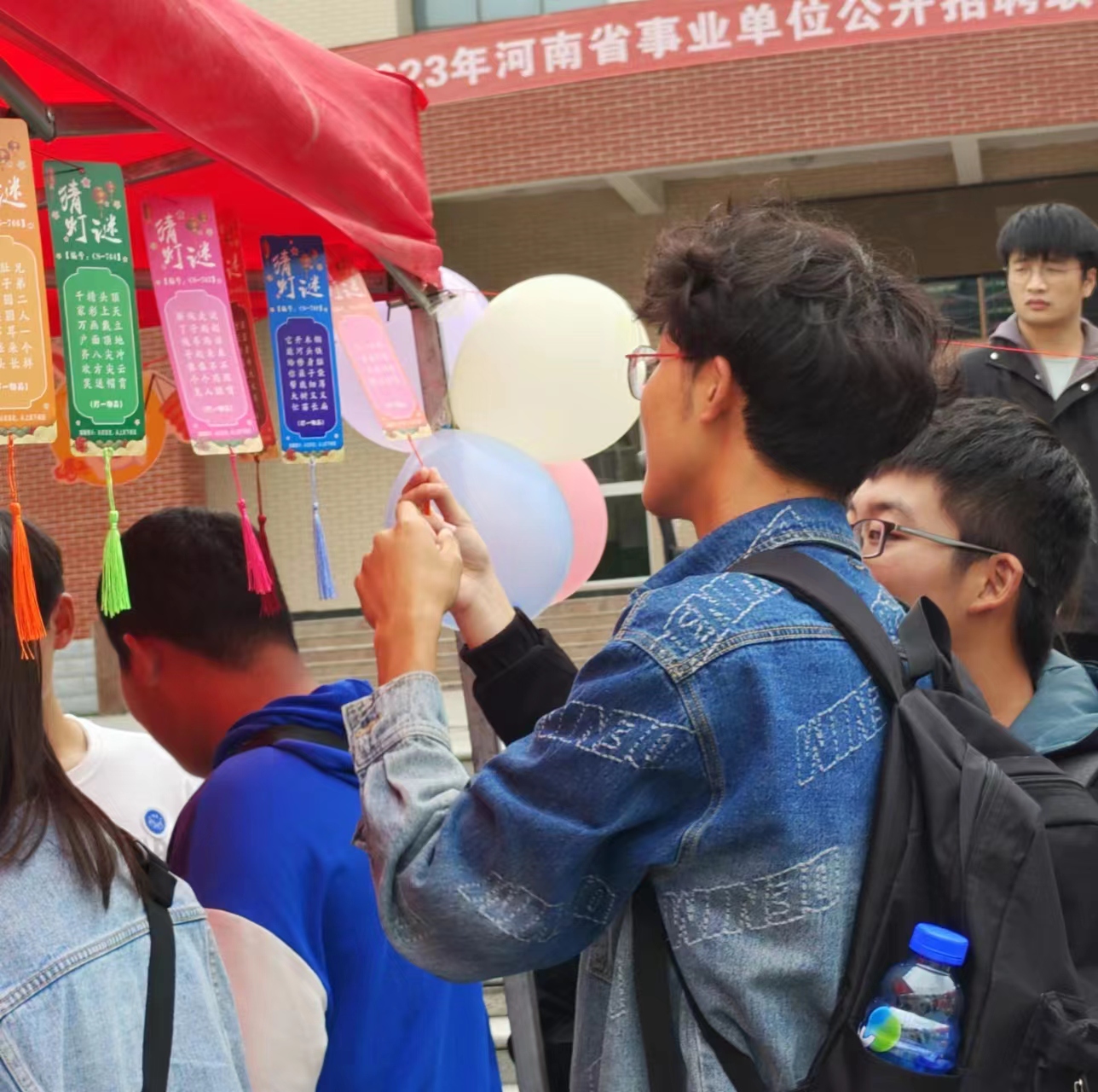 活动中最受欢迎的是灯谜竞猜环节,灯谜涵盖中秋民俗、文学常识、人名、食品等内容,融知识性和趣味性于一体。活动现场,面对极具益智性和趣味性的灯谜,大家或苦思冥想、念念有词,或互帮互助、豁然开朗……。他们兴致勃勃,各显其才,共同体验灯谜带来的乐趣。