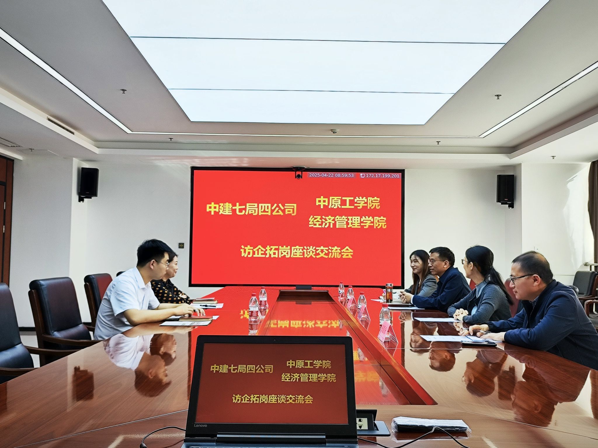 4月22日上午,学院首站来到中建七局第四建筑有限公司,与公司资深人力资源管理师、永利官网1996级校友吴娜及人力资源部经理陈振进行座谈交流。吴娜对母校老师来访表示热烈欢迎,介绍了公司发展历程、业务布局及人才需求。双方围绕毕业生就业和人才招聘等进行深入交流,会后,李向东一行参观了公司企业文化展馆,感受企业“精诚善建、卓越共进”的发展理念。