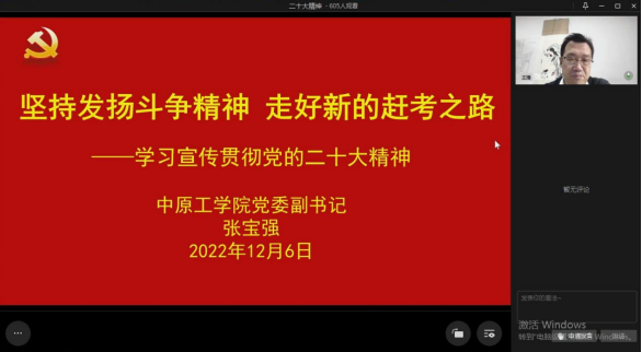 为深入学习宣传贯彻党的二十大精神,2022年12月6日,校党委副书记张宝强以企业微信直播的方式为永利官网做学习党的二十大精神专题报告,学院600余名师生聆听了报告。