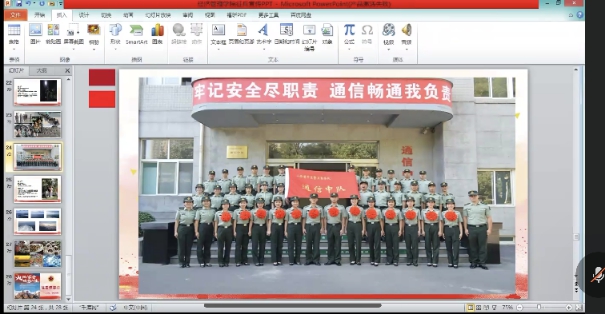 曾为武警的王森同学结合自身实际,讲述了军旅生活的收获与感悟,两年的锻炼让他学会了坚强和忍耐,懂得了感恩和责任,锤炼了意志和作风,入伍是他人生中一次重要的成长历练。曾为陆军(联勤保障部队)的柳志超同学以一名大学生成长为一名优秀士兵的心路历程为主线,介绍了部队的精彩生活,打破了同学们对部队生活枯燥和乏味的印象。曾为陆军的刘杨同学作为此次宣传队伍的唯一一名女同学,通过图片、视频展示的方式,分享了个人参军入伍后在部队的生活和经历,中华儿女多奇志,不爱红妆爱武装,极大的激励了听会的女同学入伍参军的决心与信心。曾为海军的王樑超同学围绕为什么征集大学生参军入伍、大学生应征入伍优惠政策、大学生入伍流程及注意事项四方面进行介绍,重点针对同学们关心的参军入伍优惠政策,如何报考军校以及士兵提干、选取士官、学费补偿、考研升学、退役安置等内容做了详细讲解。