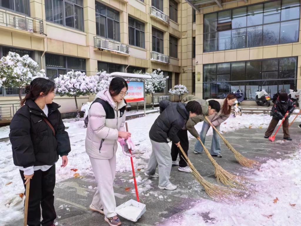 通过此次清扫路面积雪活动,304永利集团官网入口第一、第二、第四学生党支部党员用实际行动发挥了先锋模范作用,为校园师生创造了一个良好的出行环境,也为寒冷的冬日带来了一丝暖意。江南江北雪漫漫,在火热的扫雪活动中,党旗在寒冬也显得格外热烈。(通讯员 冯诗媛)