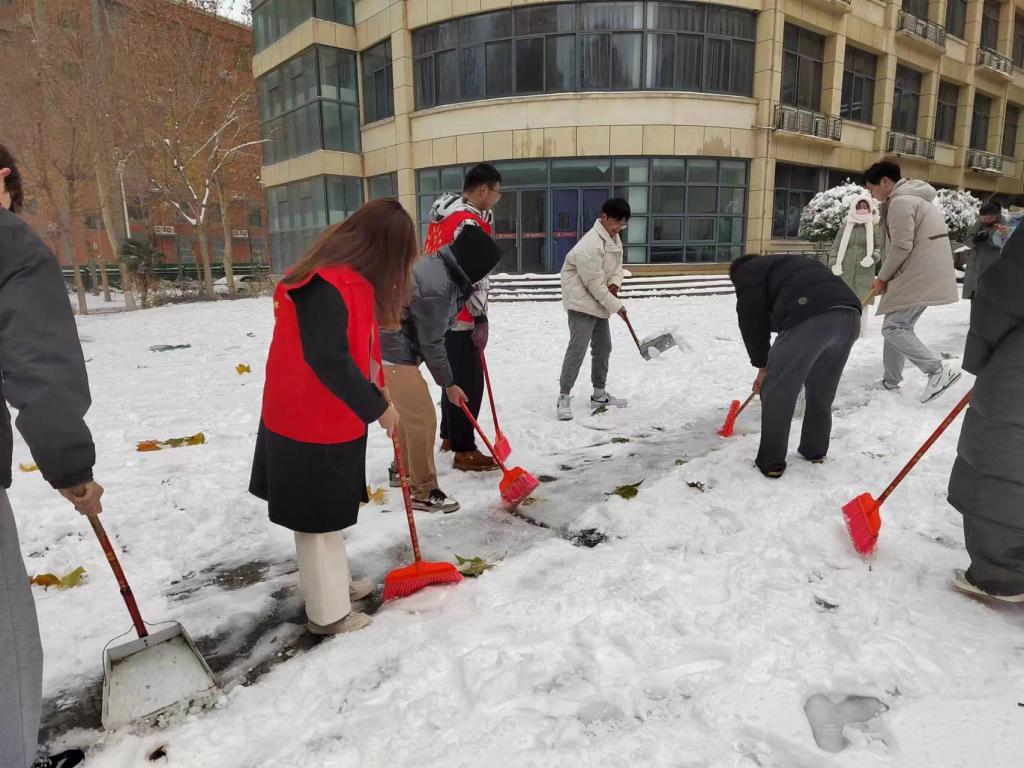 “忽如一夜春风来,千树万树梨花开。”飘落的雪花将校园装饰成独具一格的雪城。2023年12月11日,为了保障道路的畅通和同学们出行的安全,304永利集团官网入口学生党支部书记杨文乐、陈金、郭政良带领本科生学生党员积极开展了扫雪除冰保畅通工作。