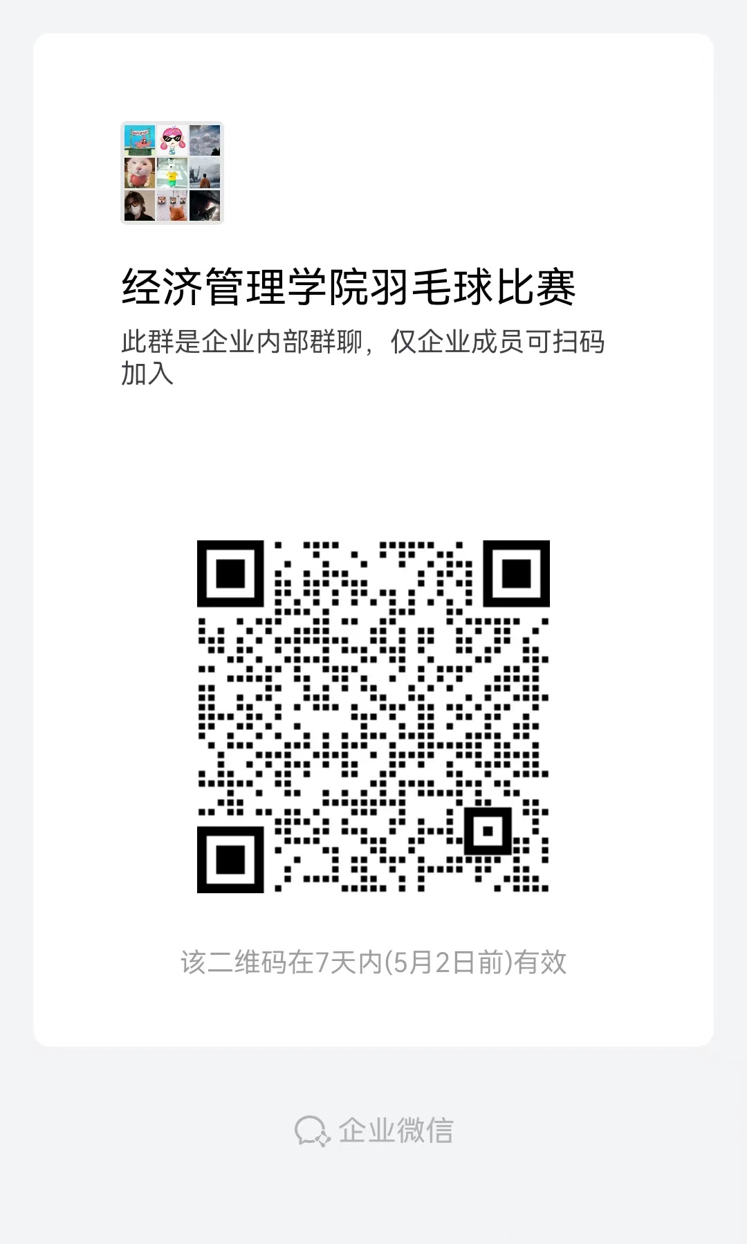 有意愿参与的学生扫码加入企业微信群,比赛相关事宜将在群里进行通知,请及时查看。
