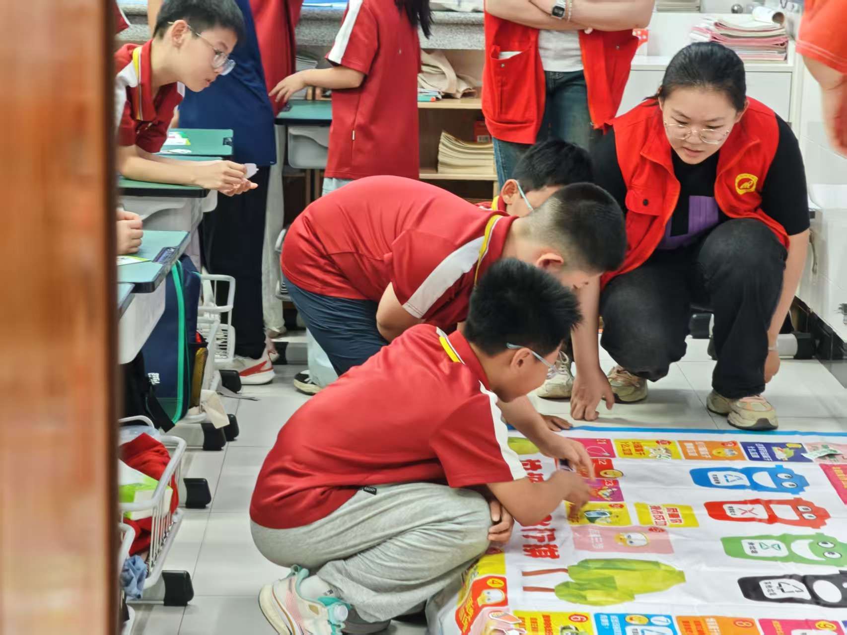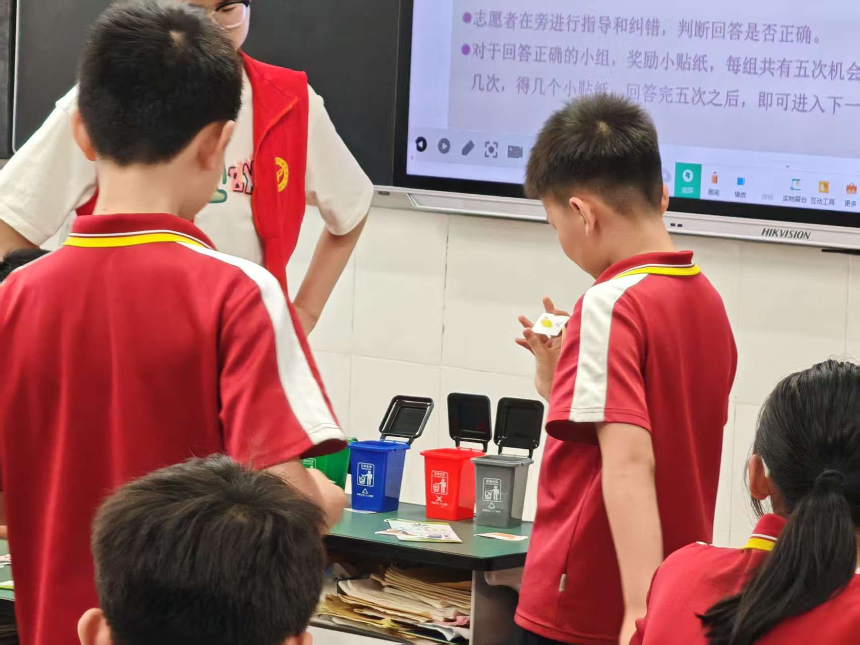 随着午后的阳光透过窗户洒下斑驳的光影,志愿者们用欢快活泼的语调,为孩子们讲解垃圾分类的各种知识。小朋友们也高兴地举着小手,在趣味问答中逐渐掌握了垃圾分类的诀窍。在卡片分类游戏中,孩子们积极参与,热情洋溢,用学到的分类知识送一个个小卡片“回家”。